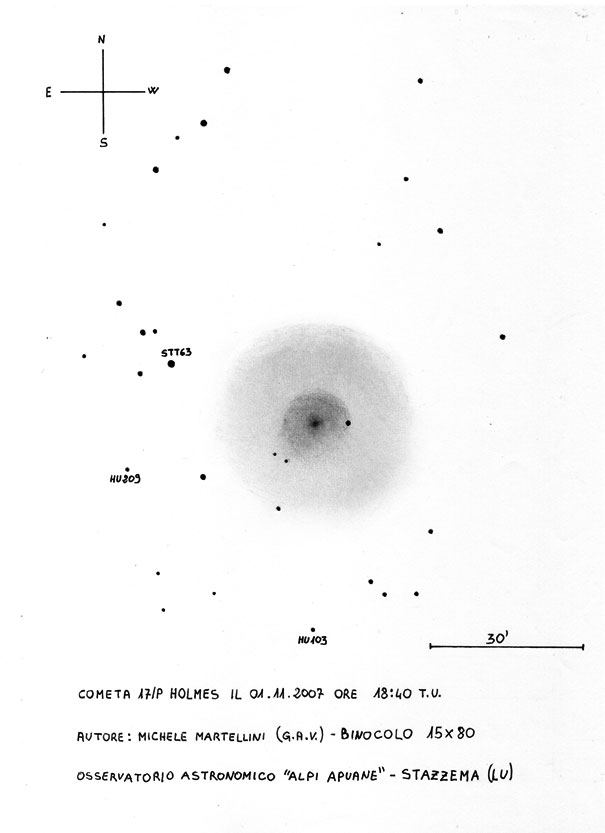 Risultati dell'osservazione visuale della cometa Holmes presso l'Osservatorio Astronomico "Alpi Apuane" del Gruppo Astronomico Viareggio, sito in Stazzema (Lu) a 601 m.s.l.m.: