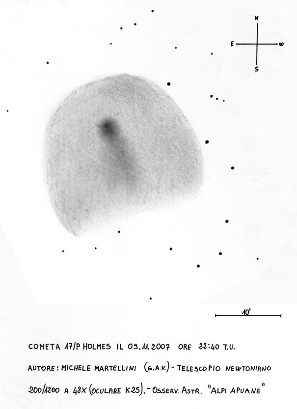 Risultati dell'osservazione visuale della cometa Holmes presso l'Osservatorio Astronomico "Alpi Apuane" del Gruppo Astronomico Viareggio, sito in Stazzema (Lu) a 601 m.s.l.m.: