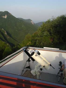 Specola "Pietro Tobino" con il precendente storico strumento da Ø200mm. durante una osservazione solare. |