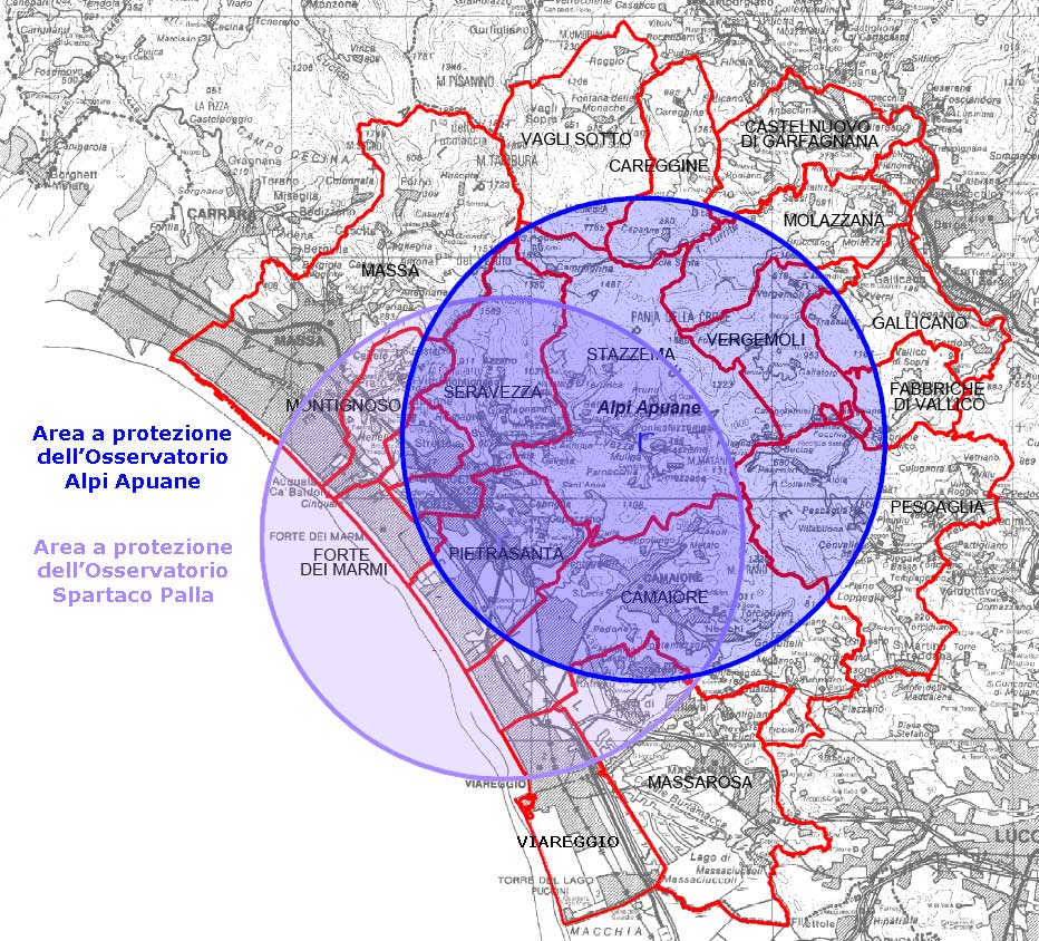 a) Comuni ricadenti nelle zone di protezione degli Osservatori Astronomici professionali, di cui all’articolo 8, comma 1, lettera a);