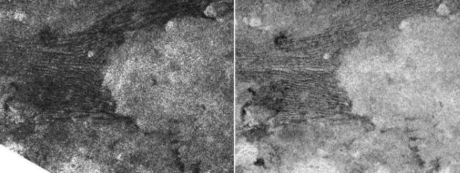 Immagini Radar di alcuni campi di dune su Titano: Fonte NASA/ESA/JPL Cassini/Huygens Mission |
