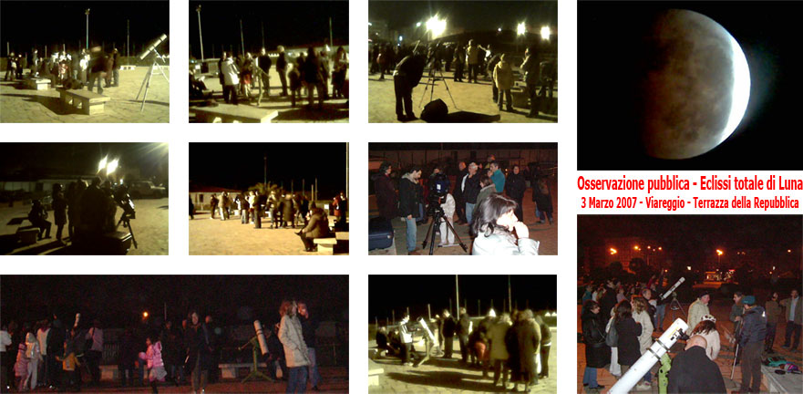 Come si può osservare dalle foto, fino a notte fonda e fino a che la Luna non è uscita dal cono d’ombra della Terra, la piazza è sempre stata piena di persone che si sono alternate ai telescopi ed ai binocoli ed hanno rivolto molte domande agli organizzatori.