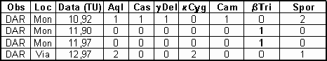 Per quanto riguarda gli altri osservatori possiamo sintetizzare i dati in tab. 1.