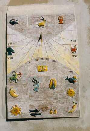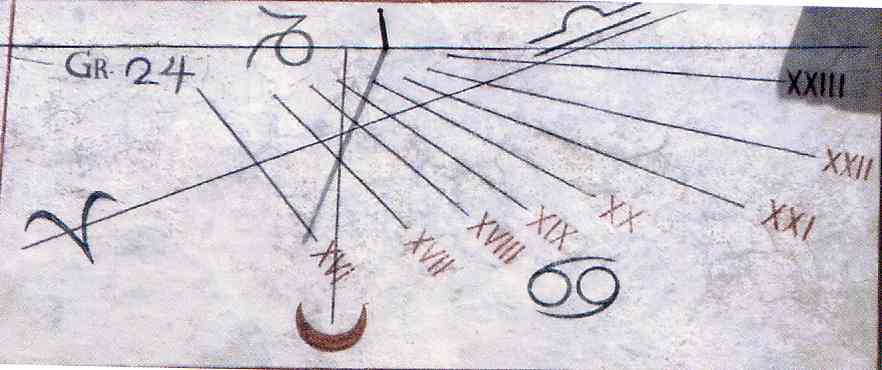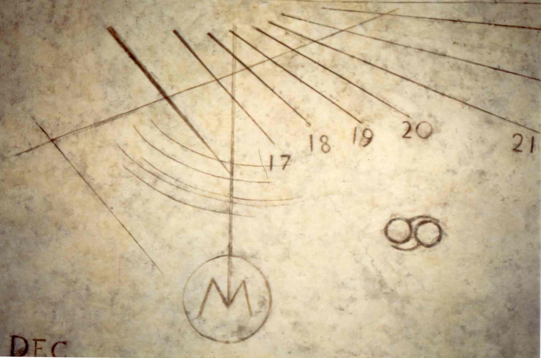 10(A)realizzato nel XVI sec; meridiana Stazzema GAV 0014 Fraz. Pomezzana Interno del Paese visibile D. Martellini 1992 14